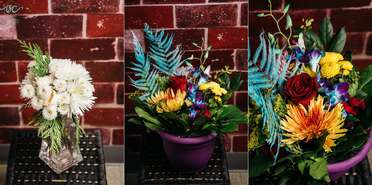 There are so many weddings that we get to be a part of, but being able to design flowers for a staff member is always an honor. We did Codi & Kevin’s wedding last May and the colors were purple and green. She basically let me do my magic and bring her flowers to life in her “Where City Meets Country” theme. We made her a special cowboy boot and cowboy hat filled with flowers for her Guest Book Table and it was a lovely addition to her special day.