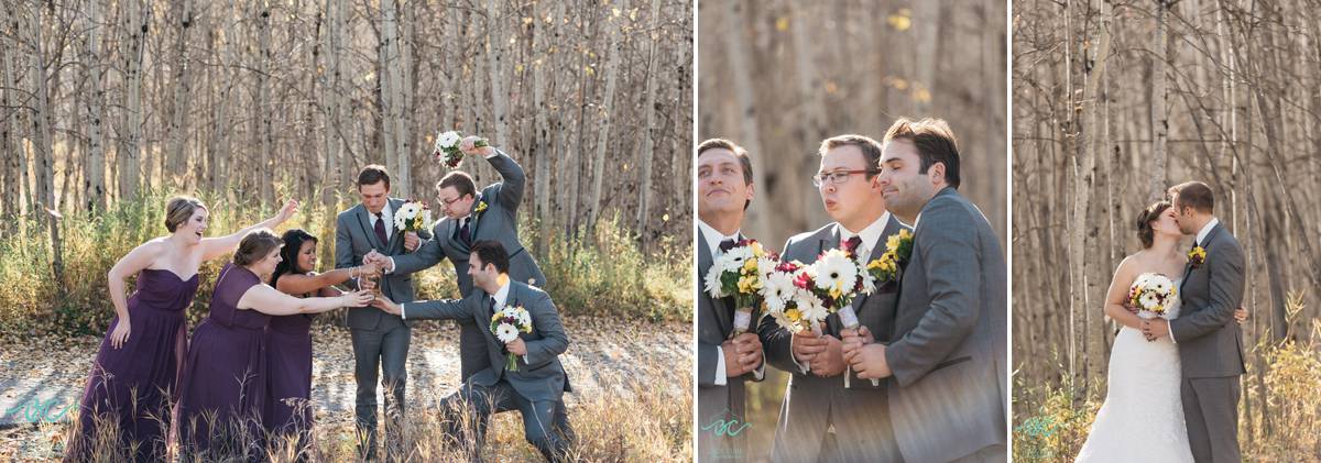 Following the beautiful ceremony, we went down to the Fish Creek Park in Calgary to photograph the bridal party. During the formals, the guys had a lot of fun with the groom where they picked him up at one point in time.