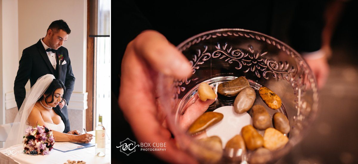 The Western Wedding ceremony was held at the Royal Glenora Club. It was a beautiful and emotional ceremony. It had a rock ceremony as well where all the guests and loved ones wished happiness upon the lovely couple.
